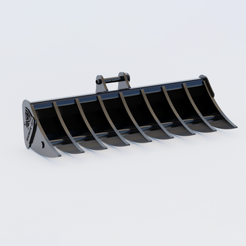 | AKA: excavator rake, land rake attachment, brush rake The excavator root rake is used to clear the ground of plants and debris before planting or building. Root rakes are commonly used by landscapers and construction sites for general land clearance and ground preparation tasks. The long tines of the landscaping rake quickly and easily removes shrubs, brambles and tree roots without removing too much soil. The Rhinox excavator brush rake is manufactured with durability in mind, featuring heavy-duty tines and a tine support bar to ensure optimal strength and prevent buckling while digging through thick materials. Our range of heavy-duty, excavator root rakes are available for mini excavators from 0.75 ton to 25 tons (2,000 lbs to 60,000 lbs) in widths of 36" wide up to 84" wide - relative to your machine size. Struggling to find the correct land rake for your excavator? Try out our Search by Machine Make and Model tool below, or give us a call and we'll be happy to help! | |
