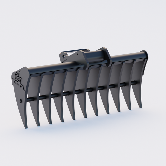 Disclaimer - The Rhinox Land Rake is not specifically designed for use with a hydraulic thumb as a "pincher." While many operators have successfully used it in this way, results may vary, and proper contact between the thumb and rake tines is not guaranteed.