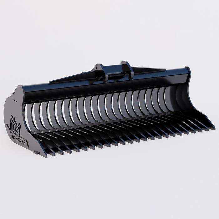 Rhinox Rake Riddle Bucket 60 Inch to fit Bobcat E63 mini excavator with X-CHANGE FITMENT.