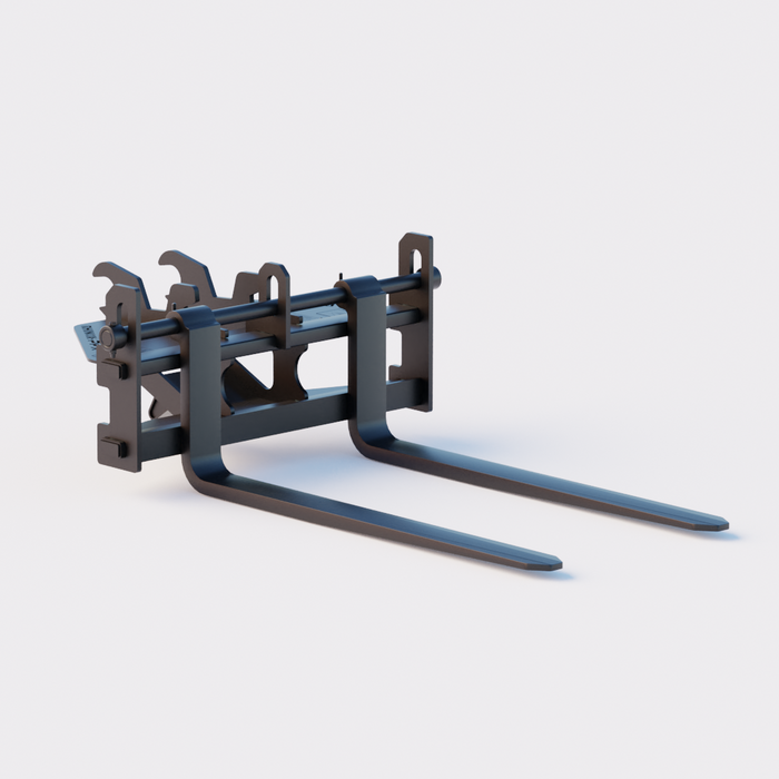 Our pallet forks also feature floating forks that pivot with gravity, making positioning under pallets easier. These tine forks are adjustable so you can easily set the fork spacing to your required width. Rhinox pallet forks also feature an in-built stand which stops them from being able to rock backwards when set down. This also makes them easier to reattach when ready to use.