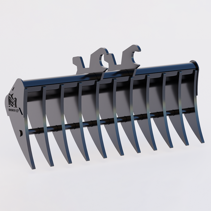 Disclaimer - The Rhinox Land Rake is not specifically designed for use with a hydraulic thumb as a "pincher." While many operators have successfully used it in this way, results may vary, and proper contact between the thumb and rake tines is not guaranteed.
