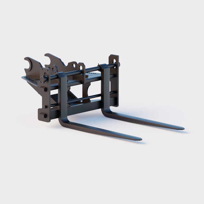 This set of excavator pallet forks (PFX) are designed to fit a Kubota KX080, allowing you to unload deliveries and move pallets of material around your job site.