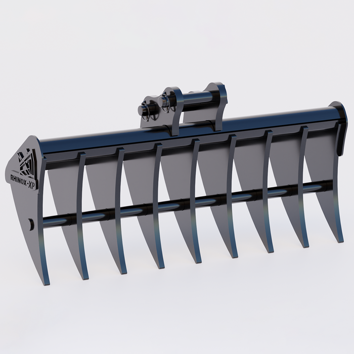 Disclaimer - The Rhinox Land Rake is not specifically designed for use with a hydraulic thumb as a "pincher." While many operators have successfully used it in this way, results may vary, and proper contact between the thumb and rake tines is not guaranteed.