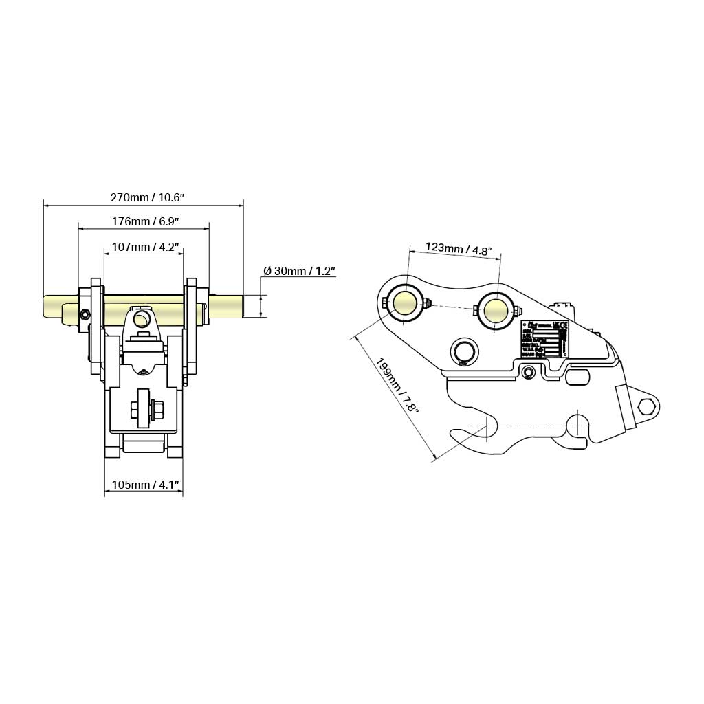 - Set of pins to attach hitch to your digger arm