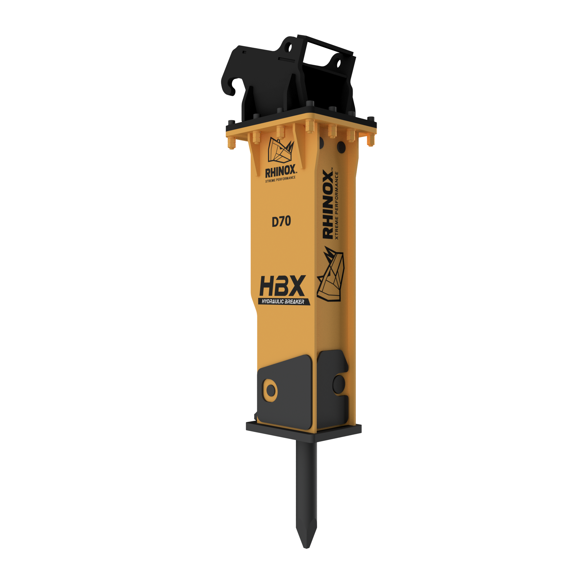 Excavator hydraulic breakers are powerful demolition attachments, designed to break apart hard rock and concrete during harsh demolition and quarrying jobs. The Rhinox hydraulic hammer connects directly into the auxiliary lines on your excavator, allowing the hydraulic pump to supply hydraulic fluid to your hammer, creating high-pressure blows.