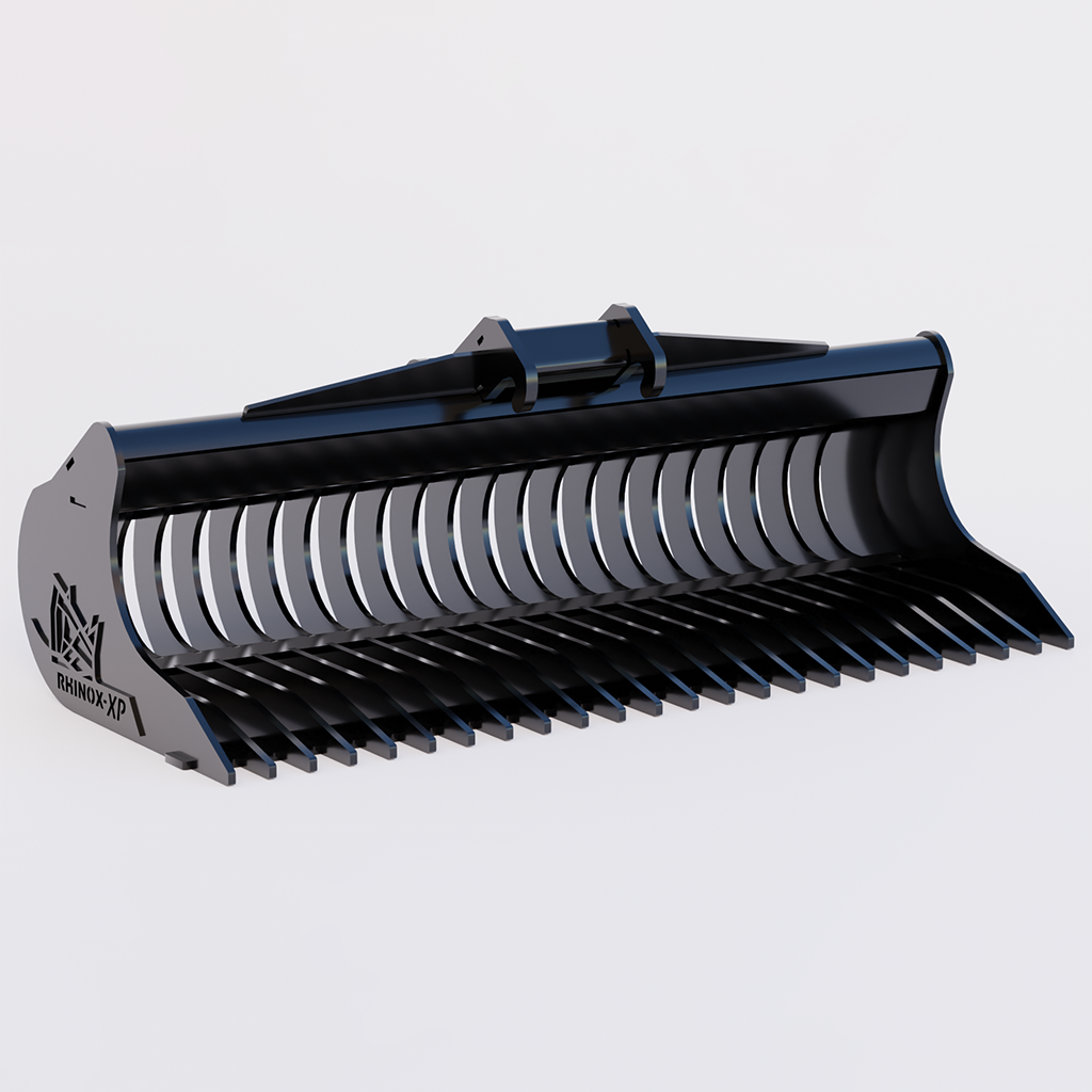 This unique attachment is the brain child of Rhinox. Combining a Riddle Bucket/Skeleton Bucket with a Land Clearance rake. This attachment is ideal for ground preparation, taking out and large stones, rocks or debris and leaving behind loose soil. This can also be used as a standard riddle bucket for separating aggregates.