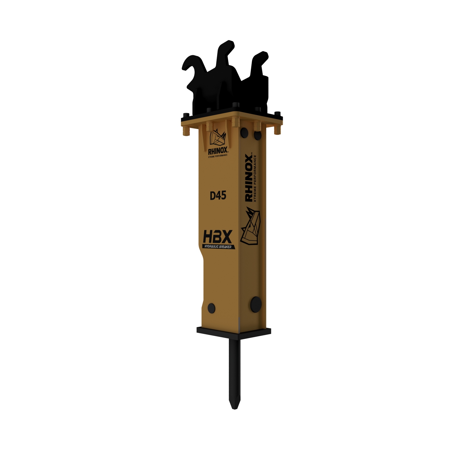 Excavator hydraulic breakers are powerful demolition attachments, designed to break apart hard rock and concrete during harsh demolition and quarrying jobs. The Rhinox hydraulic hammer connects directly into the auxiliary lines on your excavator, allowing the hydraulic pump to supply hydraulic fluid to your hammer, creating high-pressure blows.