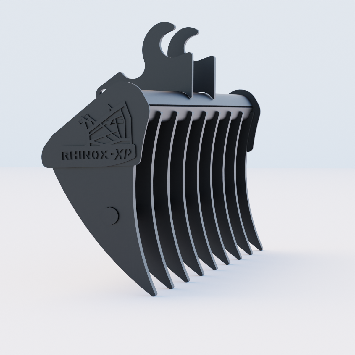 Disclaimer - The Rhinox Land Rake is not specifically designed for use with a hydraulic thumb as a "pincher." While many operators have successfully used it in this way, results may vary, and proper contact between the thumb and rake tines is not guaranteed.